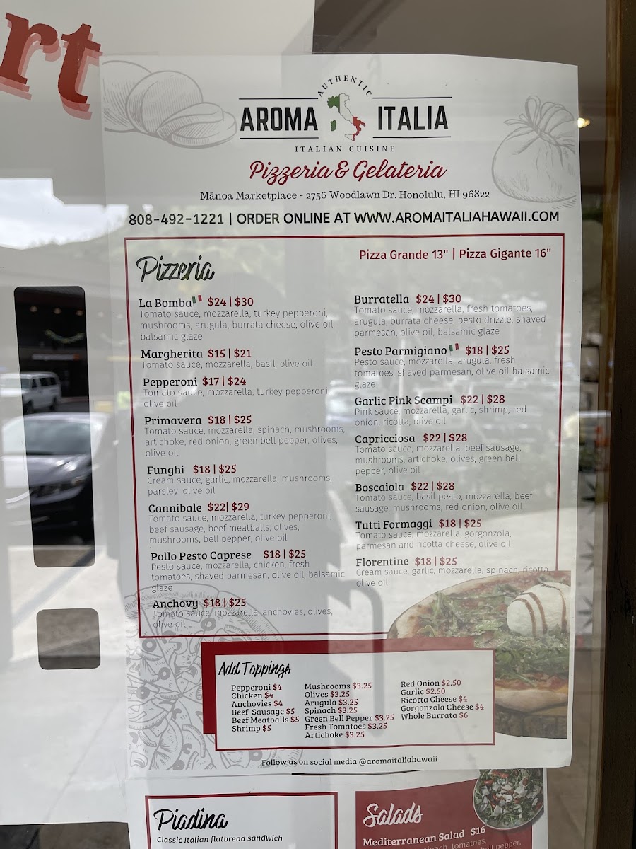 Step into the world of bold flavors and comforting classics with the Aroma Italia Menu. Nestled at 2756 Woodlawn Dr 6 101, Honolulu, HI, this menu is a delightful journey through Italian cuisine, where every dish feels handcrafted. You’ll find everything from rich, cheesy pastas that melt in your mouth to perfectly crisp pizzas topped with fresh ingredients that make each bite memorable. The starters are just as tempting, with garlic knots, bruschetta, and antipasti plates that set the tone for the meal ahead.